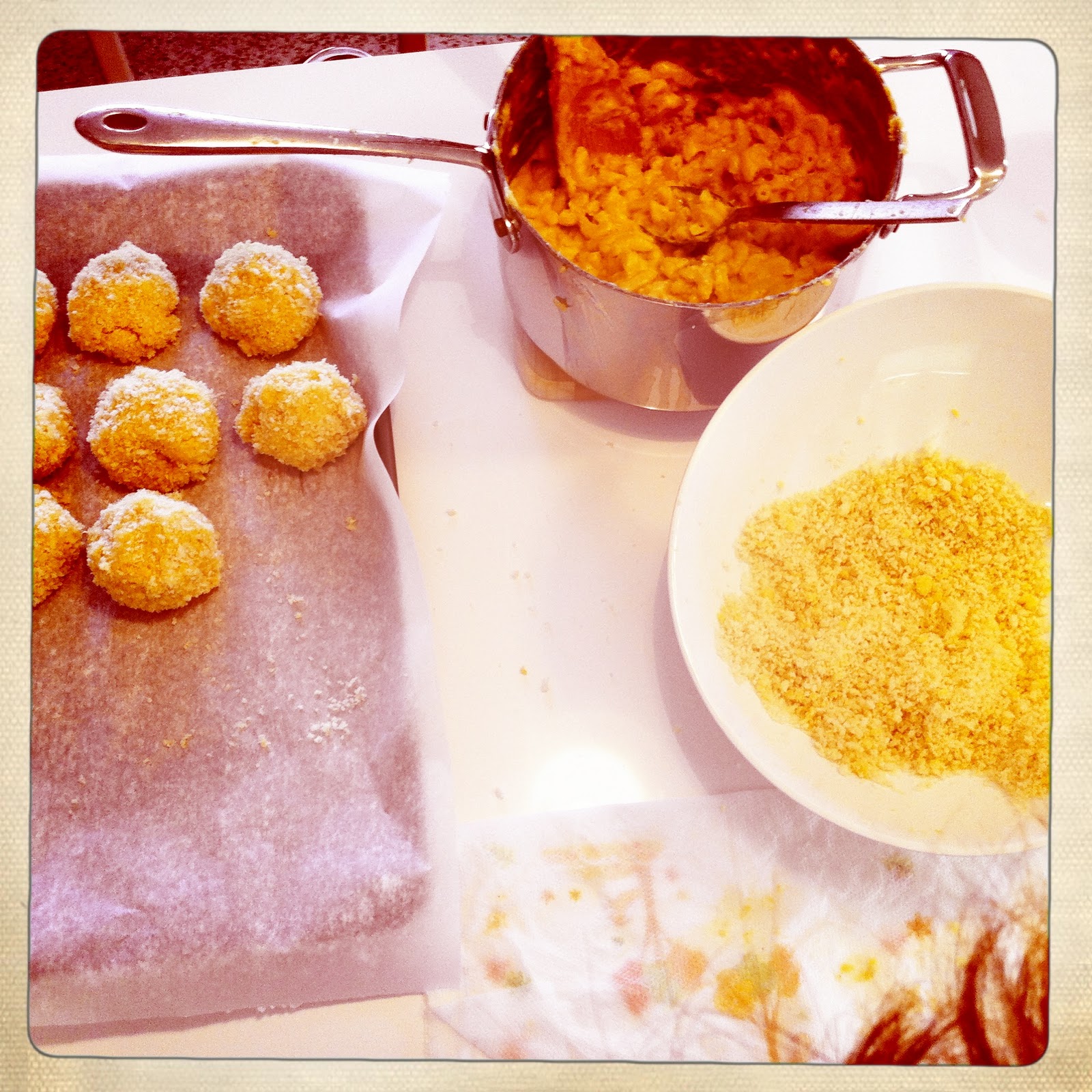 Katrina getting ready to make baked Mac n' Cheese Balls |